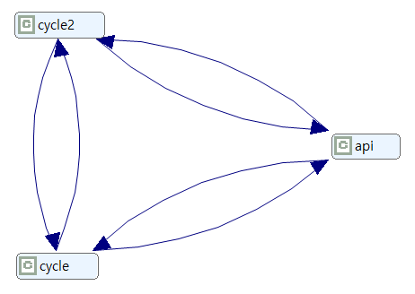 - 3개의 컴포넌트가 3개의 순환 의존을 가지고 있고, 1개의 Cycle Group을 형성하고 있다.